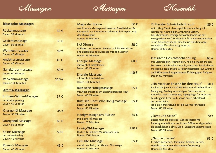 Die Sauna steht unseren Hotelgästen kostenfrei zur Verfügung. Für externe Gäste bieten wir ein Tagesticket für 12 € an. Gerne für Sie täglich von 16.00 - 21.30 Uhr geöffnet.
